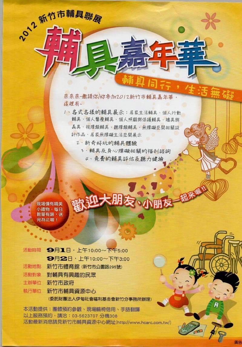 | 2012-08-08 | 輔具嘉年華-輔具同行,生活無礙101年度輔具聯展 | 2894 | |
